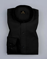 Black Giza Satin Cotton Full Sleeve and Chinese Collar Shirt For Men