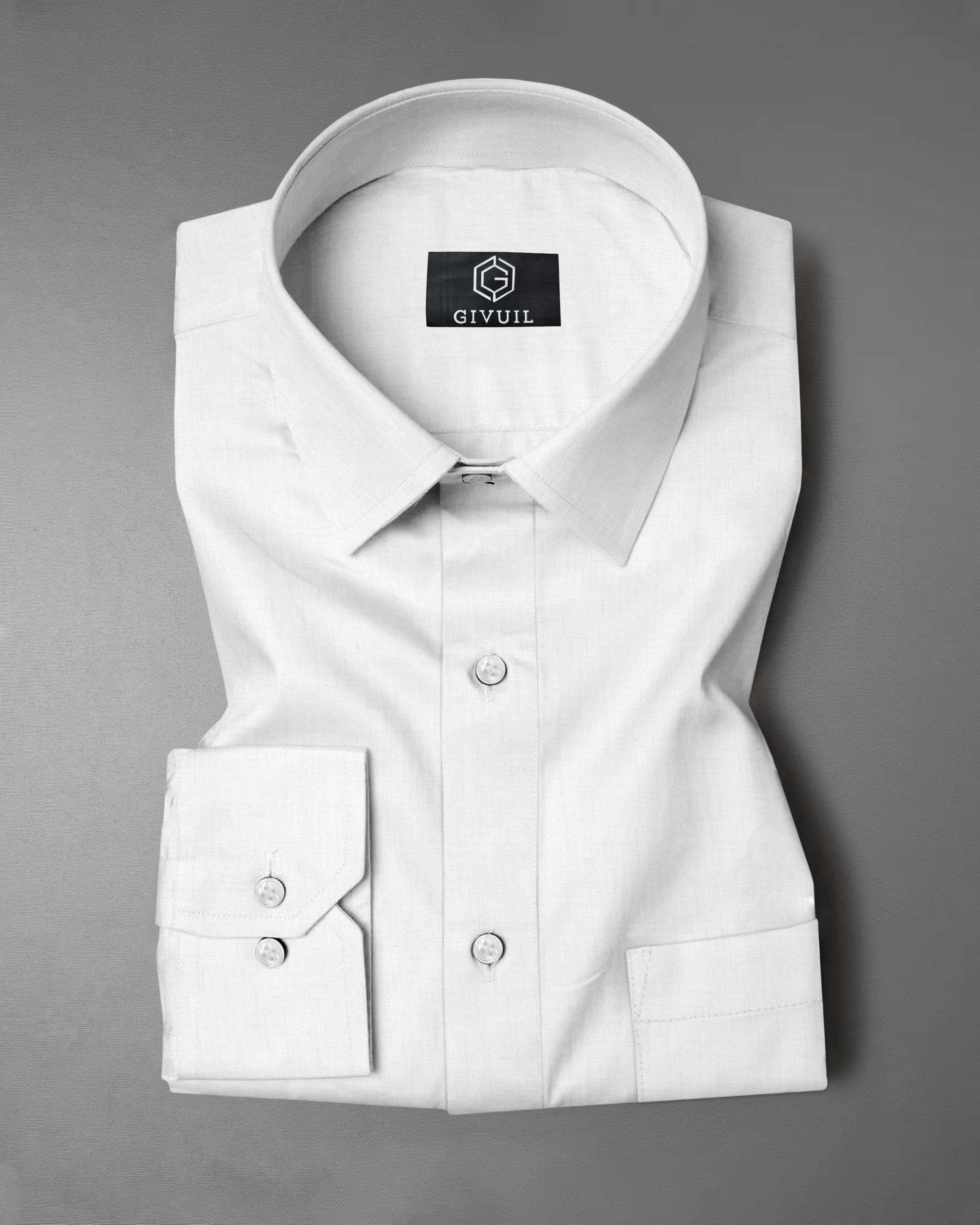 The classic white solid design reflects understated sophistication, making it a versatile choice for office wear, business meetings, and formal occasions. Designed with a tailored formal fit, crisp collar, and clean detailing, this shirt delivers a sharp, confident look that defines the GIVUIL standard.